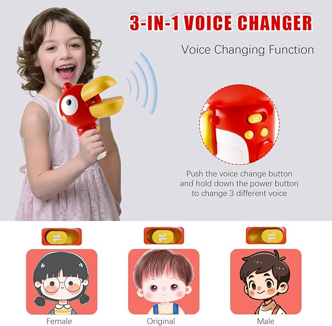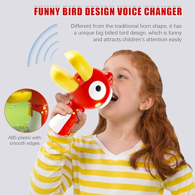 3-IN-1 Voice Changer Megaphone Toy for Kids Different from the traditional horn shape, it has a unique big billed bird design, which is funny and attracts children's attention easily...