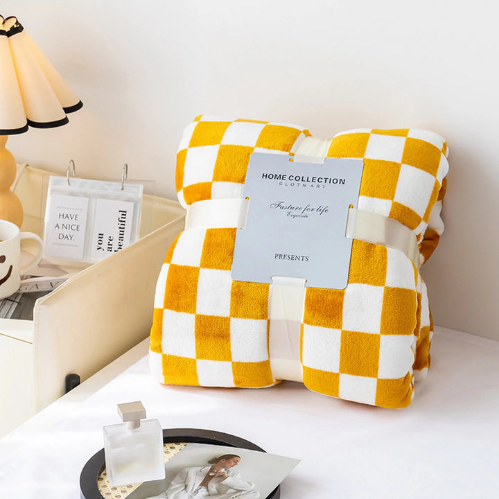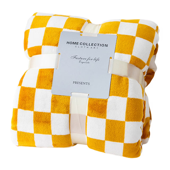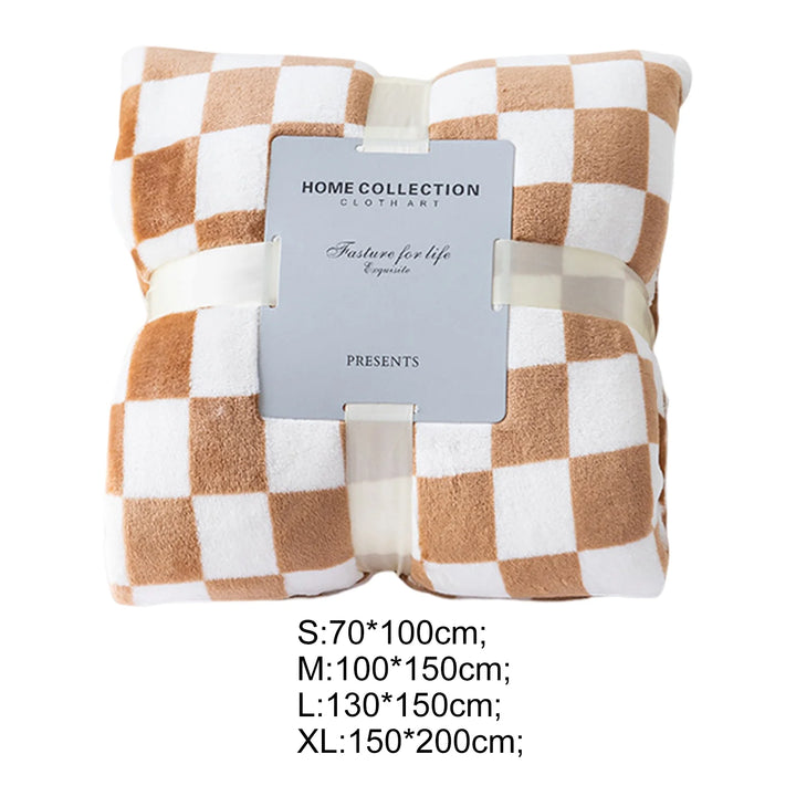 Throw Blanket Checkerboard Design Coldproof Polyester Bedroom Bed Winter Warm Flannel Blanket Sleeping Cover for Daily Use