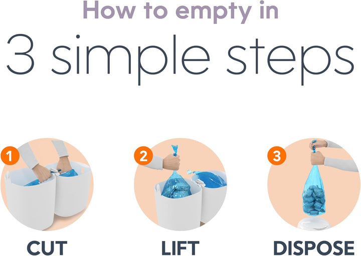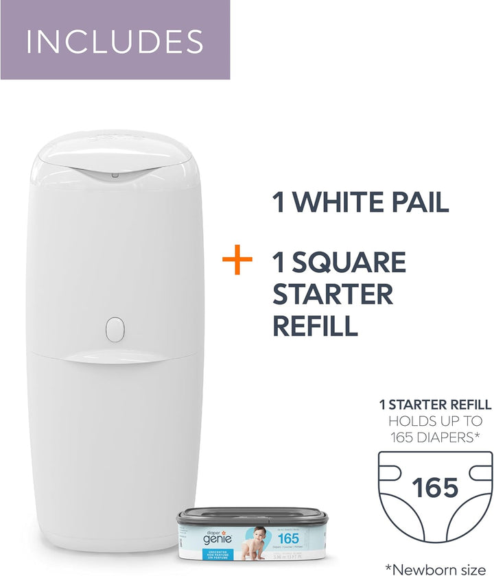 Diaper Genie Compact Pail Includes 1 Starter Square Refill That can Hold up to 165 Newborn-Sized Diapers.