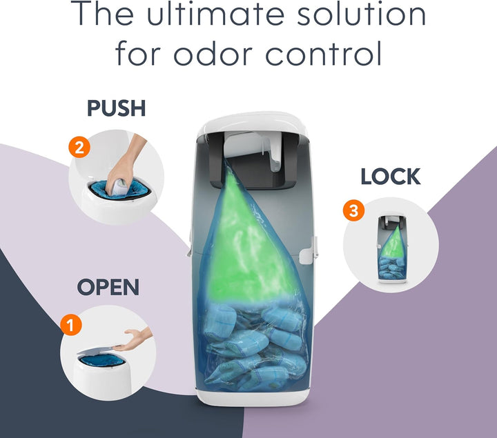 KEEP YOUR NURSERY SMELLING FRESH - holds up to 50 newborn diapers and has a Push N Lock clamp that helps prevent odors from escaping for ultimate odor control....