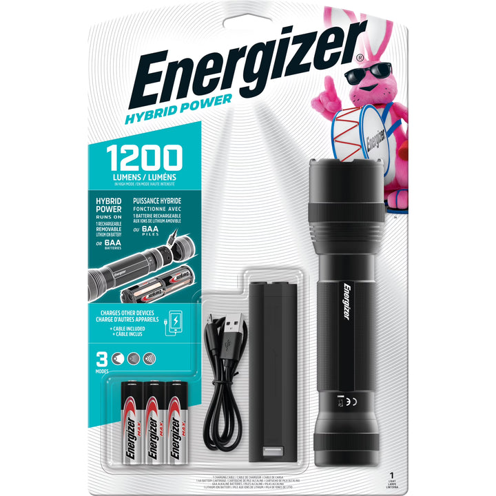 Energizer Hybrid Tactical LED Flashlight with 1200 Lumens and Rechargeable Battery Pack