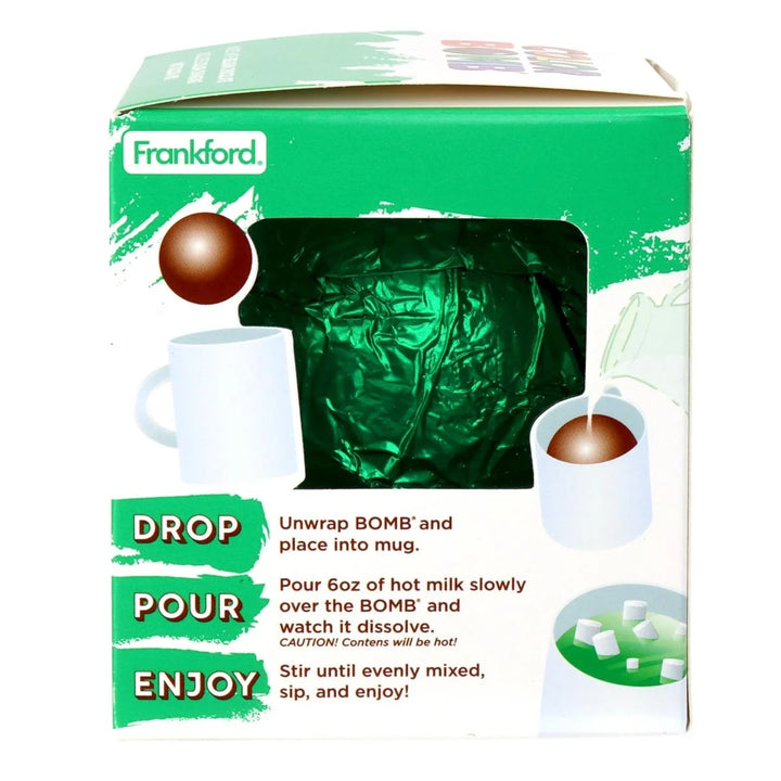 About this item Frankford ORIGINAL Hot Chocolate BOMB NEW GREEN COLOR BOMB format Made with rich Belgian Milk Chocolate Filled with sweet mini marshmallows Once prepared, a delicious silky...