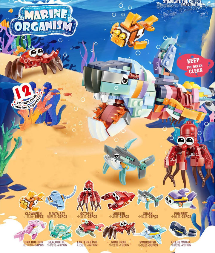 KYLON Sea Animals for Iego Advent Calendar 2025, Advent Calendar Children, 24 Pieces Kit, 24 Small Animals + 2 Large Animal Model Set Christmas 2025