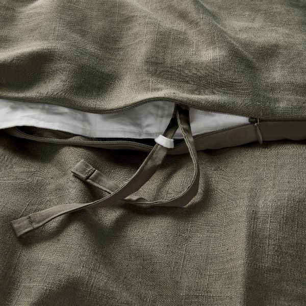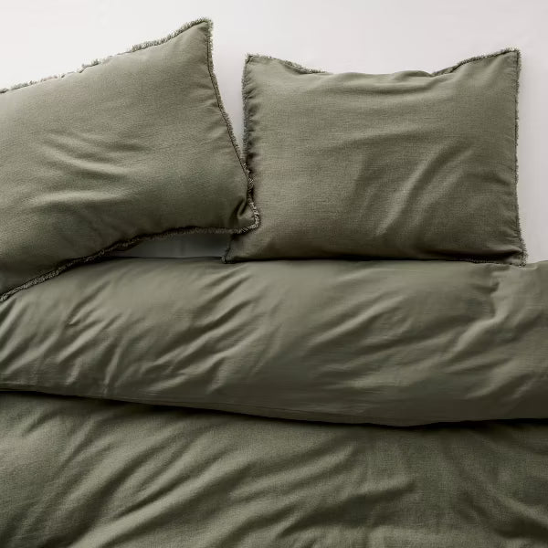 Heavyweight Linen Blend Duvet Cover and Sham Set - Casaluna (Olive Green)