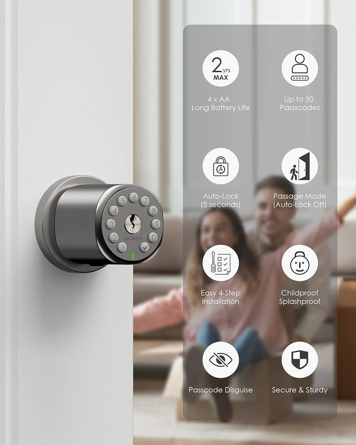 - Programmable Door Knob with Keypad 🚪 Disguise your passcode in up to 20 digits when someone is around; Lock immediately by pressing '✔', or let Sequra 'Auto-Lock' after 5 seconds; Turn on ‘Passage Mode’ to leave Sequra unlocked for your convenience; Turn on ‘Silent Mode’ if you don't want others to hear any audible feedback