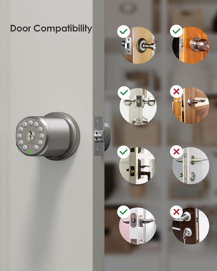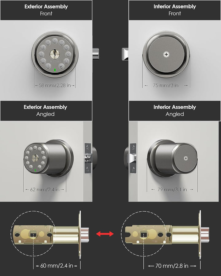 - Easy 4-Step Installation Completed in 5 Minutes by 1 Person 🚪 Fits most interior doors with standard backsets from 2⅜ inches up to 2¾ inches, and door thicknesses up to 2.5 inches; Uses 4 x AA batteries from a single brand