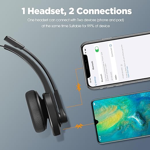 - Noise Canceling Microphone: Our Bluetooth headset with noise canceling microphone, which is perfect for trucker. Our wireless microphone headset will Eliminates up to 96% of background noise and you will be heard clearly. And the mute button will bring you more convenient and safe when driving.