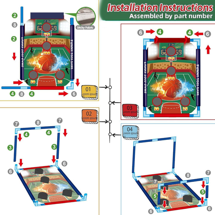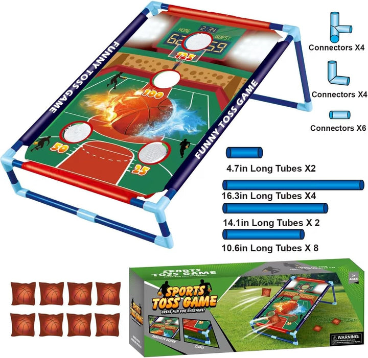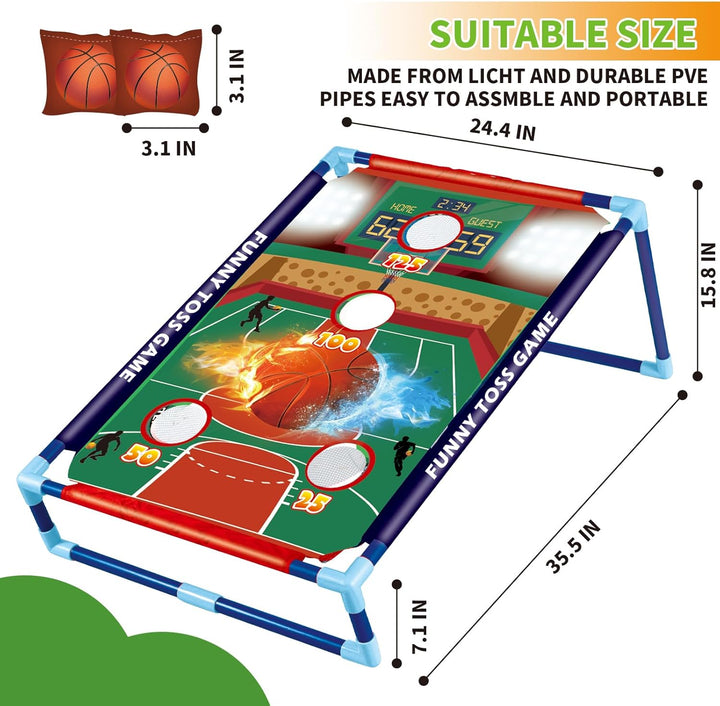 - You will receive 1 basketball themed stand, size 35.5*34.4'', - sturdy and durable, easy to install, different scoring corn holes increase the fun of outdoor activities.4 red beanbags and 4 blue beanbags, 1 organizer bag - help your child to develop a good habit of cleaning up the toys.